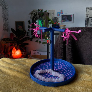 Through this process of trial and error of my work I didn’t want any of the paper to go to waste, so I salvaged as much as possible creating a jewellery stand out of the waste paper. The base stand made out of cardboard and an old embroidery ring and the actual stand is made out of rolled up paper which was not used. The pink bits poking out were failed attempts for fake plants in my vase.